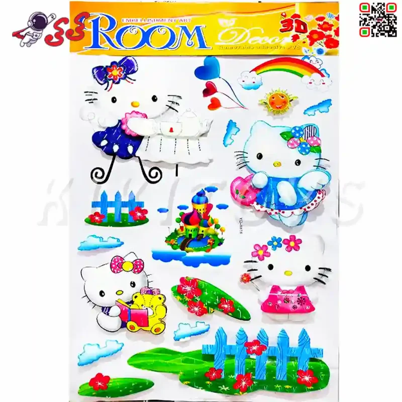 این محصول یک برچسب دیواری یا استیکر اتاق کودک طرح کیتی است که بصورت سه بعدی طراحی شده است که بعد از نصب بصورت برجسته می باشند.جنس این استیکرها از پلاستیک با کیفیت بالا ساخته شده اند و بر روی به آسانی نصب می گردد که برای تزیین اتاق کودک بسیار شیک و زیبا هستند و جلوه و چشم انداز خوبی به اتاق کودک می دهد.