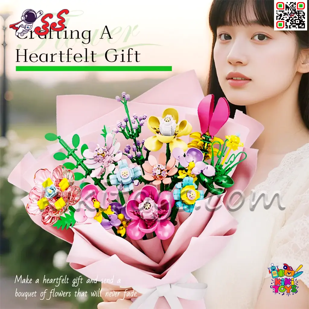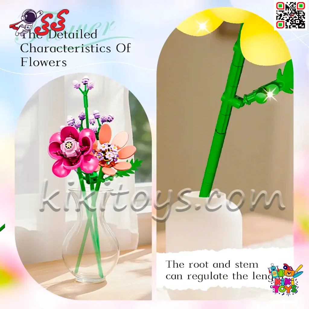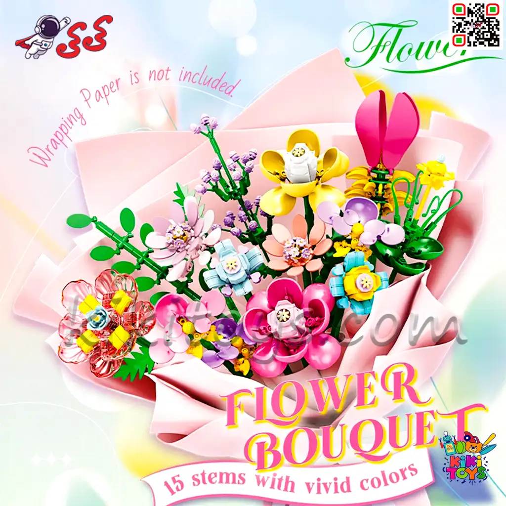 لگو دستهگل 15 شاخه ای دکوری 726 قطعه WOMA مدل 11160
