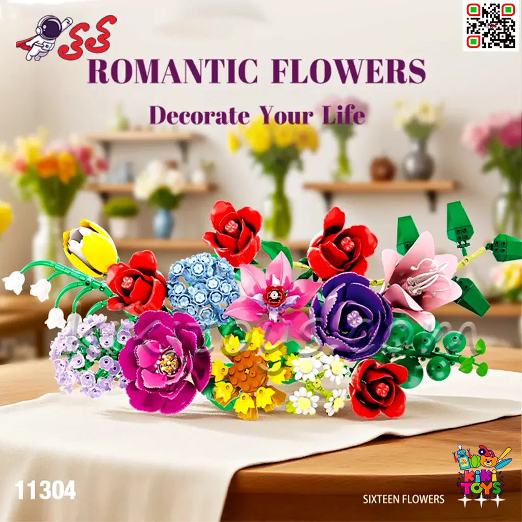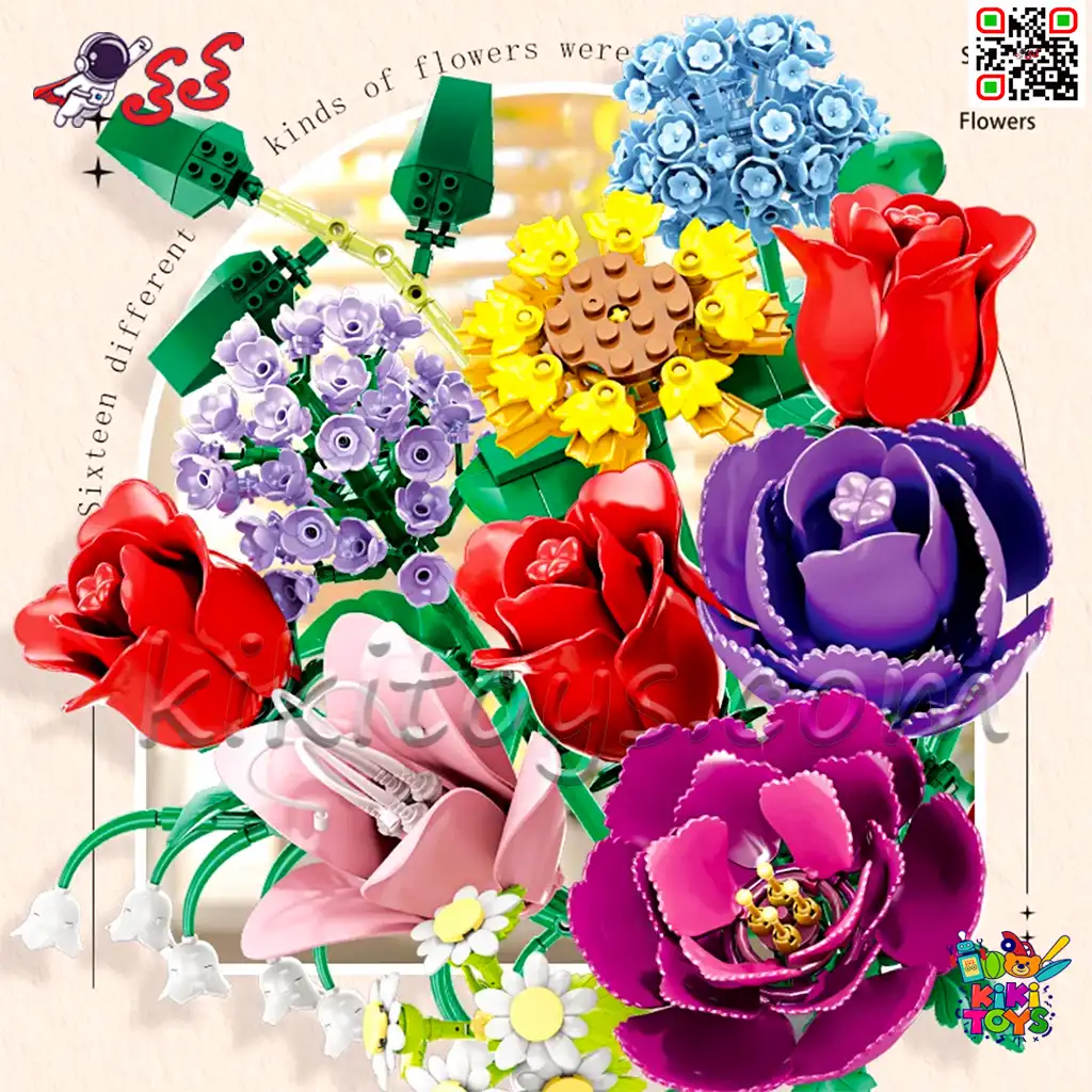 لگو دستهگل 16 شاخه ای دکوری 907 قطعه WOMA مدل 11304