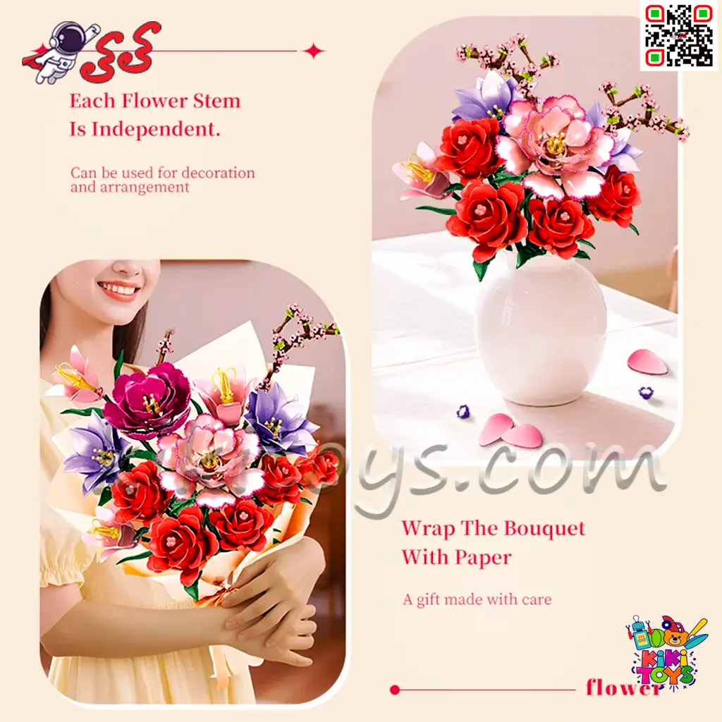 ست لگو دستهگل WOMA 11309 شامل 769 قطعه باکیفیت ABS میباشد که امکان ساخت یک دستهگل کامل و دکوری را فراهم میکند.