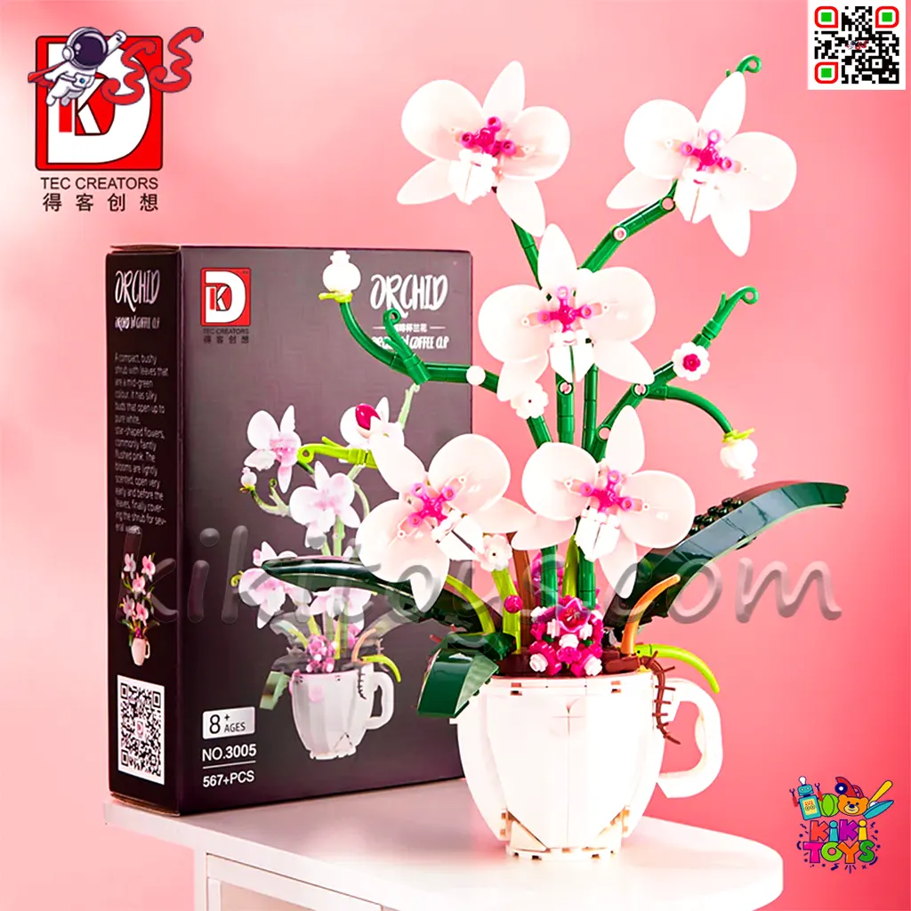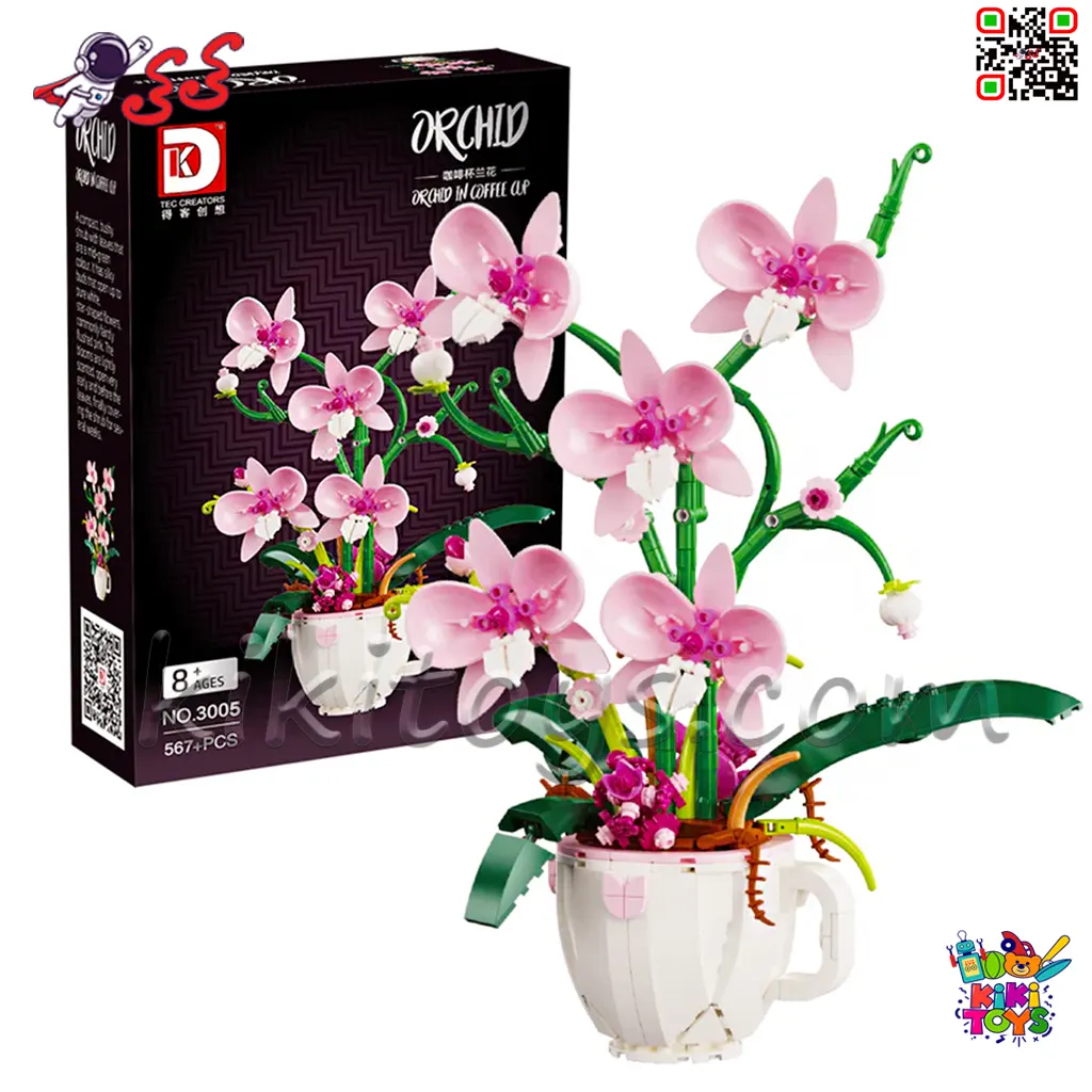 لگو گل ارکیده در فنجان قهوه DK مدل 3005 | ست ساختنی دکوری 567 قطعه