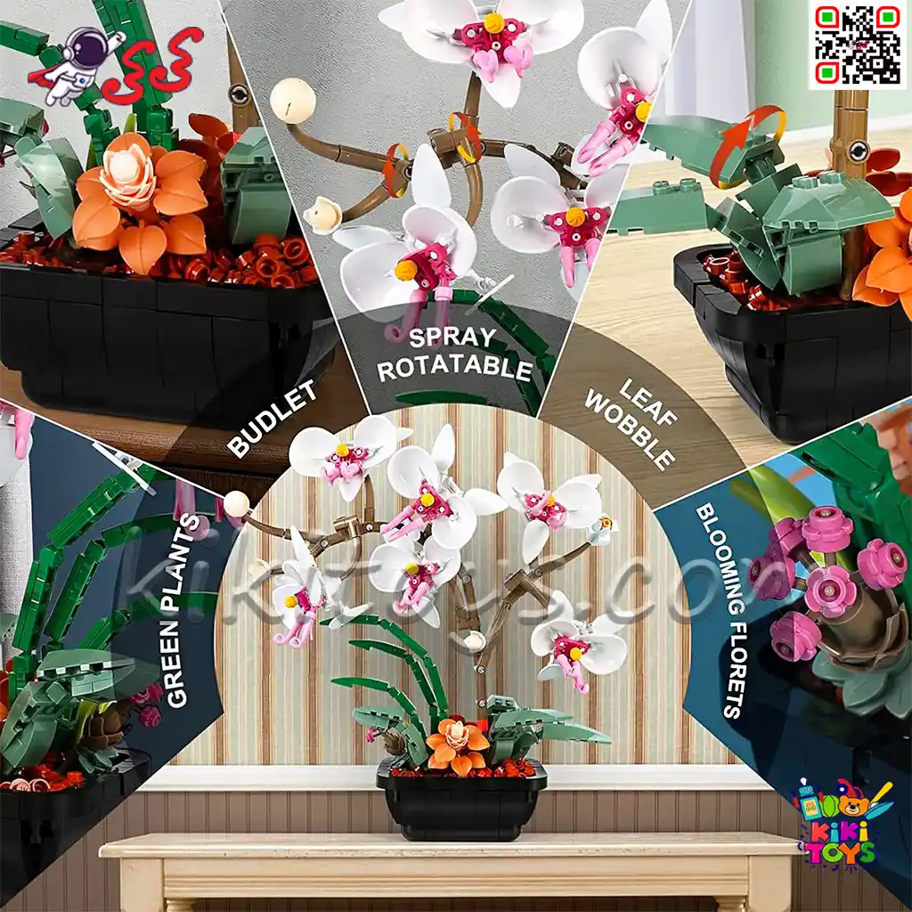 این مجموعه شامل 581 قطعه متنوع است که امکان ساخت یک گل ارکیده دقیق و زیبا در گلدان را فراهم میکند.
