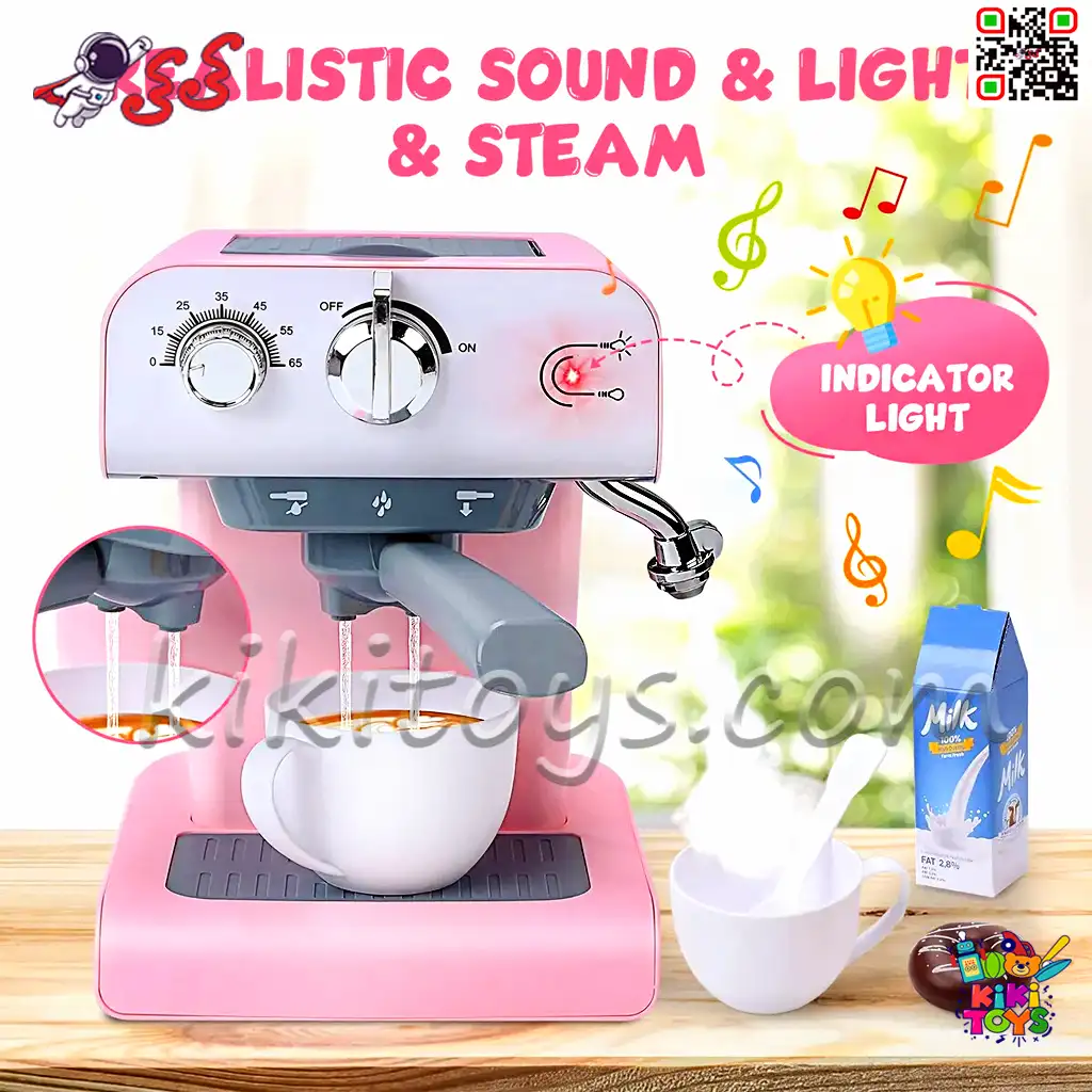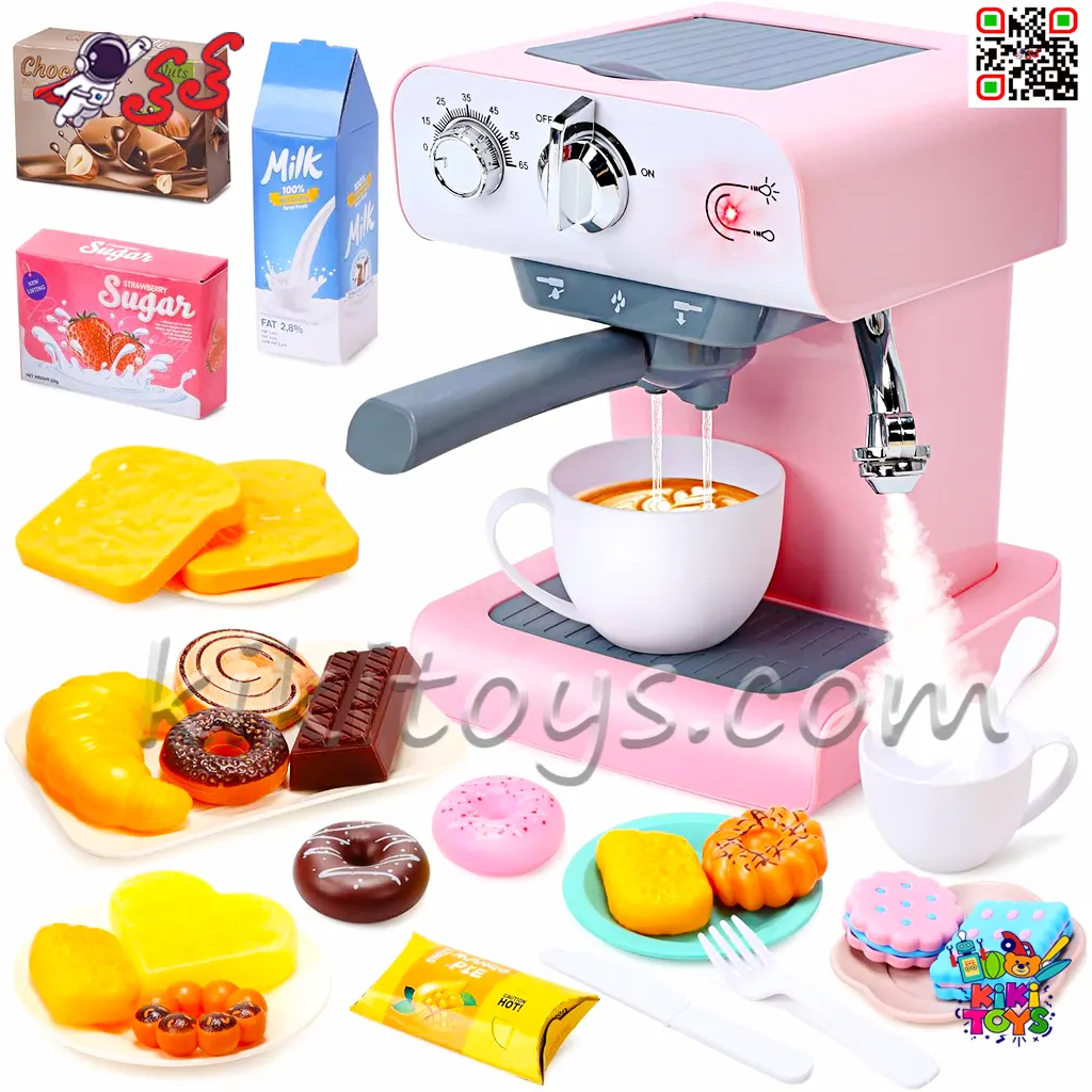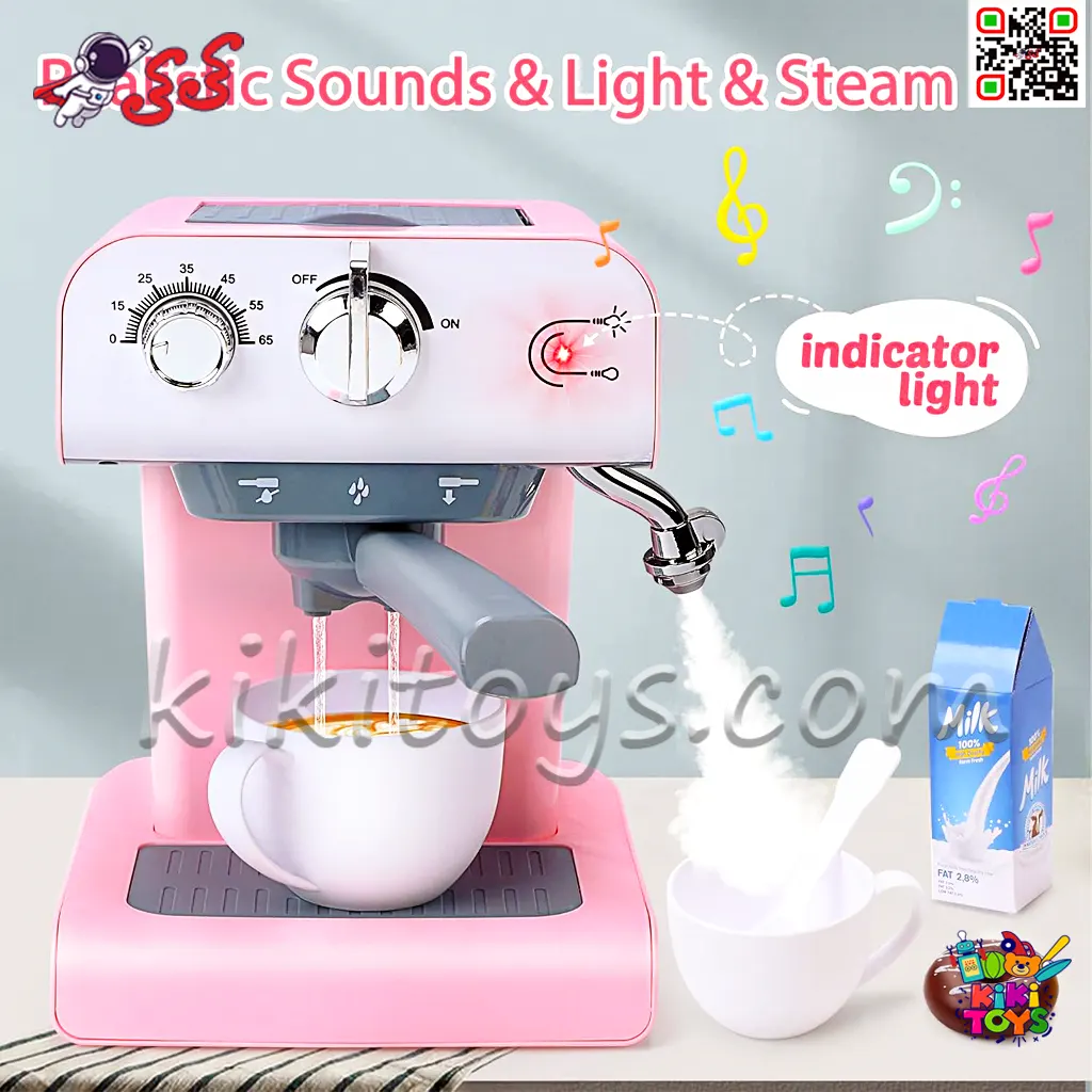 اسپرسوساز و قهوهساز اسباببازی کودک مدل 8609 با بخار، نور و صدا | ست آشپزخانه و دسر بازی واقعی